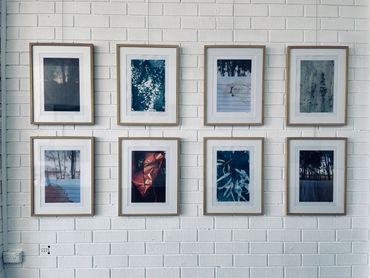 The site sample works (works on paper) document the first two chapters through images of the installation, montages, cyanotype of plant matter from the site and mark making using charcoal from past clearings on the very land the installation was on. These works encompass a visual overview of past chapters capturing textures, colours, sense of space and fragility.